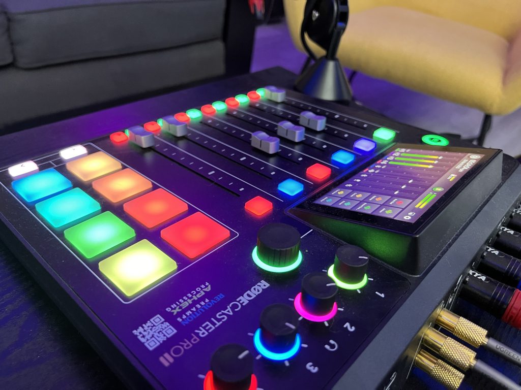 Our RรDECaster Pro II mixer, paired with 4x RรDE PodMics, delivers rich, broadcast-quality sound every time. With studio-grade preamps, onboard sound pads, and flexible routing, your audio will be crisp, balanced, and ready to edit the moment you leave.